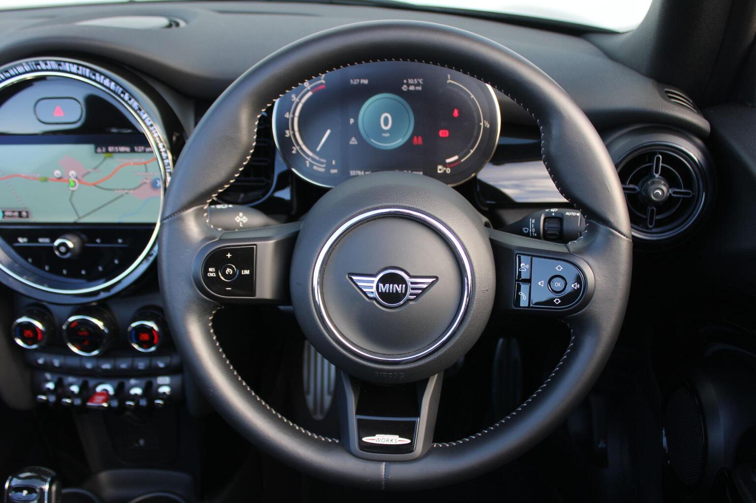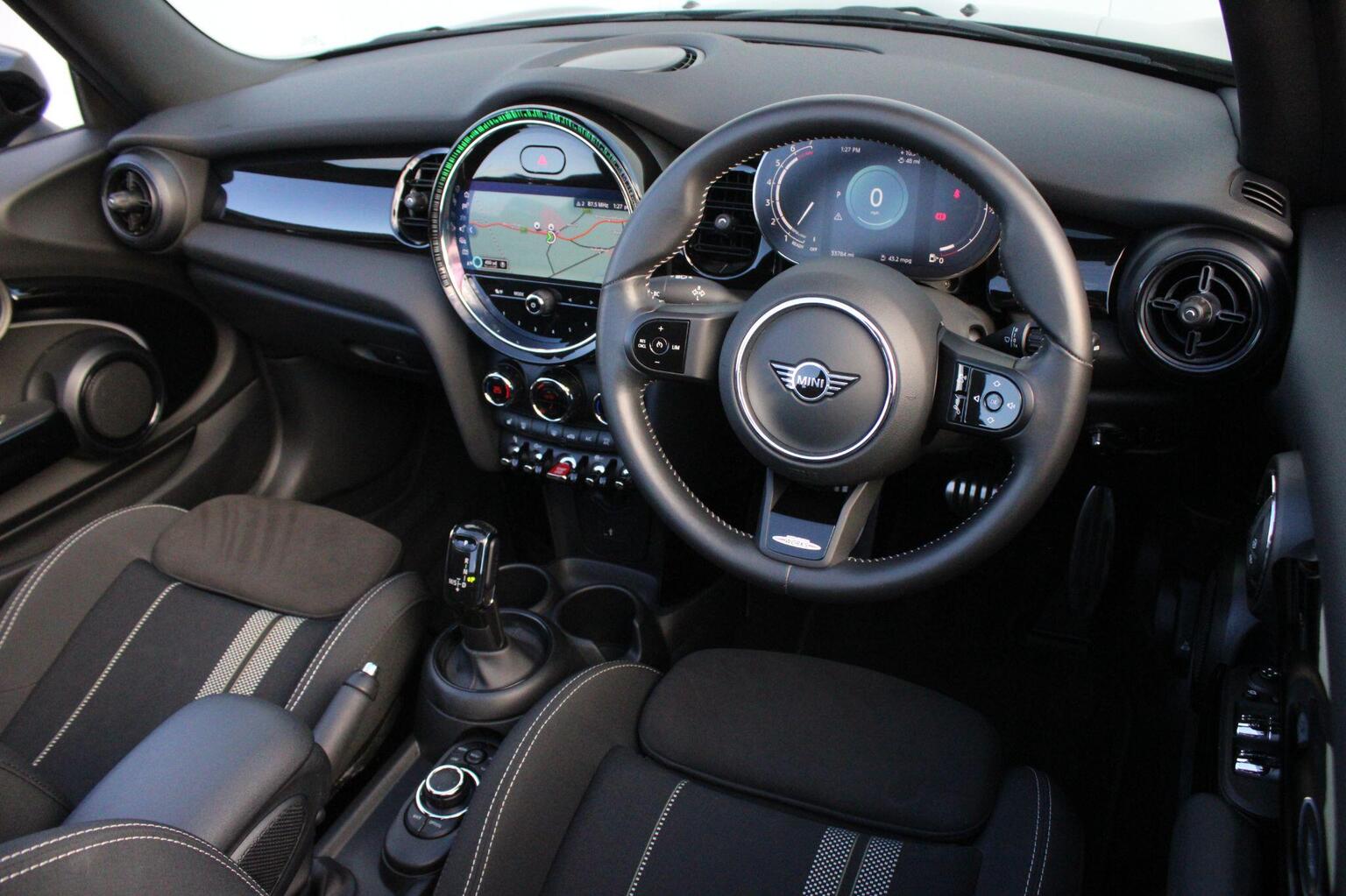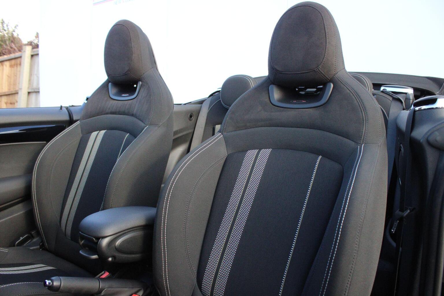 Rear Fog Light, Rear LED Lights with Union Jack Design, Rear Passenger ISOFIX, Side Scuttle Panels with Integrated Indicators, Single Tone Fanfare Horn, Speakers - 4, Steering Column Height and Length Adjustment, Storage - Compartments in Doors, Sun Visor with Vanity Mirrors, Sun-Heat Protection Glass, TPWS - Tyre Pressure Warning System, Tool Kit, Walknappa Leather Steering Wheel with Grey Seam - John Cooper Works Badge on Piano Black Lower Steering Wheel Spoke, White Indicators, 12 Volt Socket in Front Centre Console, 17in Alloy Wheels - John Cooper Works Track Spoke, 3 Point Seatbelts on all Seats, 4 Lashing Eyes in Luggage Compartment, 8.8in Touch Screen with LED Ring, Active Roll-Over Protection, Adaptive Suspension, Air Conditioning - Manual, Airbags, Alarm System, Anti-Lock Braking System - ABS, Bluetooth for Compatible Mobile Phone with Audio Streaming, Carbon Black Colour Line - Knee Roll and Door Armrests, Chrome Highlights, Convertible Pack, Cruise Control with Brake Function, Cupholders, DAB Tuner and FM Tuner, Door Mirrors - Caps in Black, Dynamic Brake Lights, Dynamic Stability Control - DSC, Easy Load Function, Electric Windows - Front, Electro-Mechanical Steering with Speed Dependant Steering Assistance, Electronic Gear Shifter, Electronic Vehicle Immobiliser, Exhaust Tailpipe - Left with Chrome Finisher, Folding Rear Seats - 50-50, Front Passenger ISOFIX and Airbag De-Activation Switch, Fuel Filler Cap in Body Colour, Fully Electric Black Soft Top with Integrated Sun-Roof Functionality, Glove Compartment, Headlights - Automatic Lights-On, Heated Rear Window, Heated Windscreen Washer Jets, Instrument Cluster, Interior Lighting, Interior Surface - Hazy Grey, Interior Trim - Piano Black, John Cooper Works Aerodynamic Kit, John Cooper Works Sport Seats, Keyless Go, LED Headlights with Closed Ring as Daytime Driving Lights, LED Reading Lights - Vanity Mirror Lights - Front Foot Well Lights - Spotlights on Front Seats, Leatherette Gearshift Lever and Handbrake Gaiters, MINI Driving Modes, MINI E-Call, MINI TeleServices, Mechanical Seat Adjustment - Forward-Back and Backrest for Front Seats - Driver Seat Height Adjust, Model Logo Cooper on Right of Tailgate, Multifunction Controls for Steering Wheel, On-Board Computer, PDC - Park Distance Control - Rear, Performance Control, Piano Black Exterior Trim, Radiator Grille - Chrome Border with Black High-Gloss Slats, Rain Sensor Window Wipers