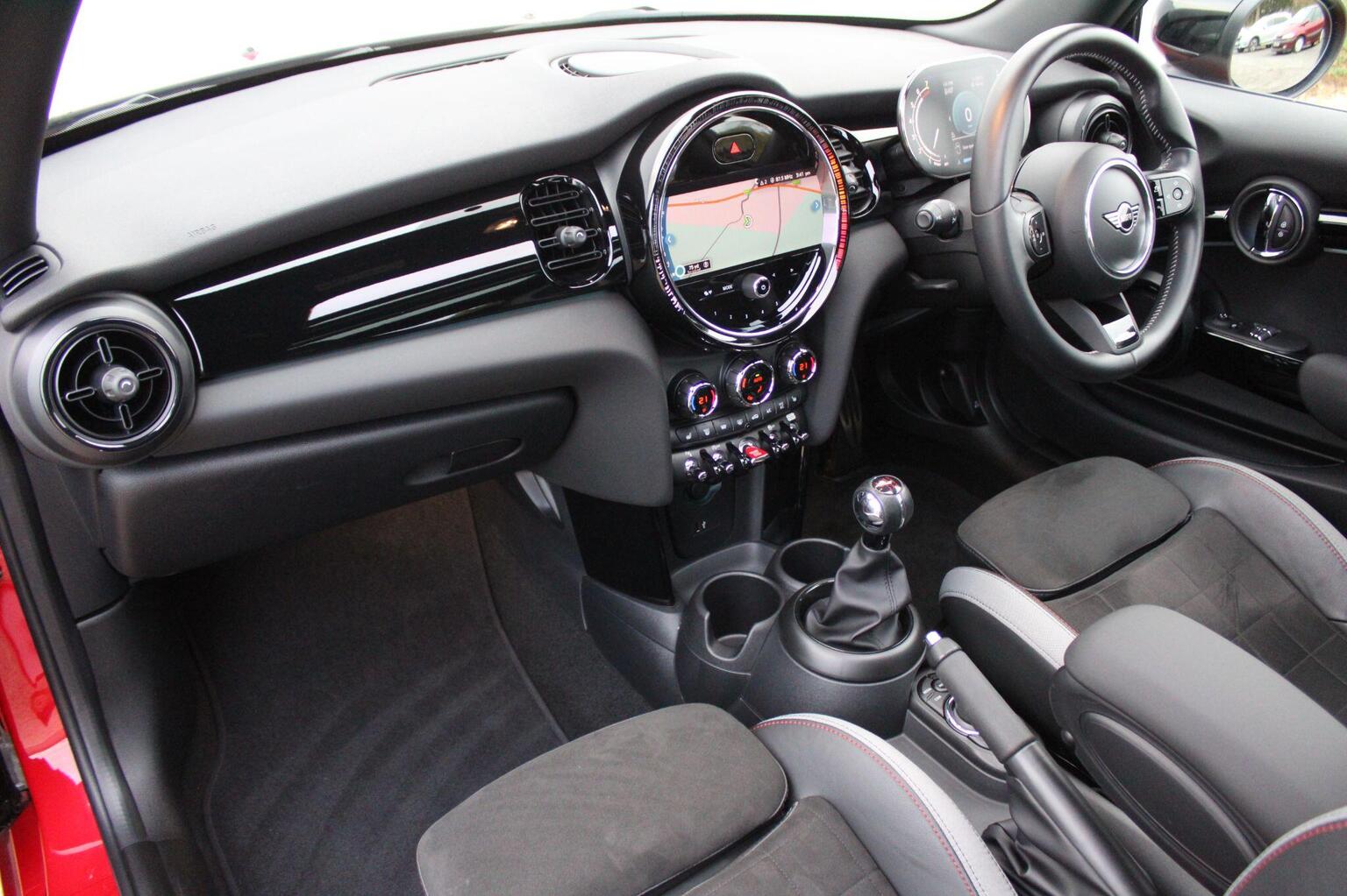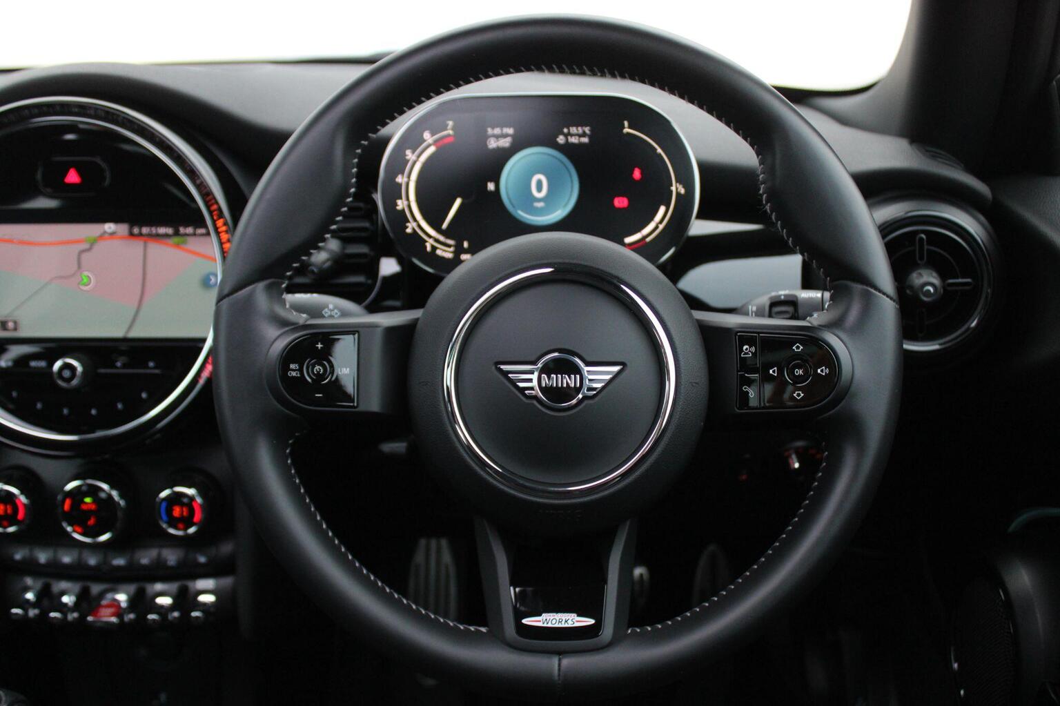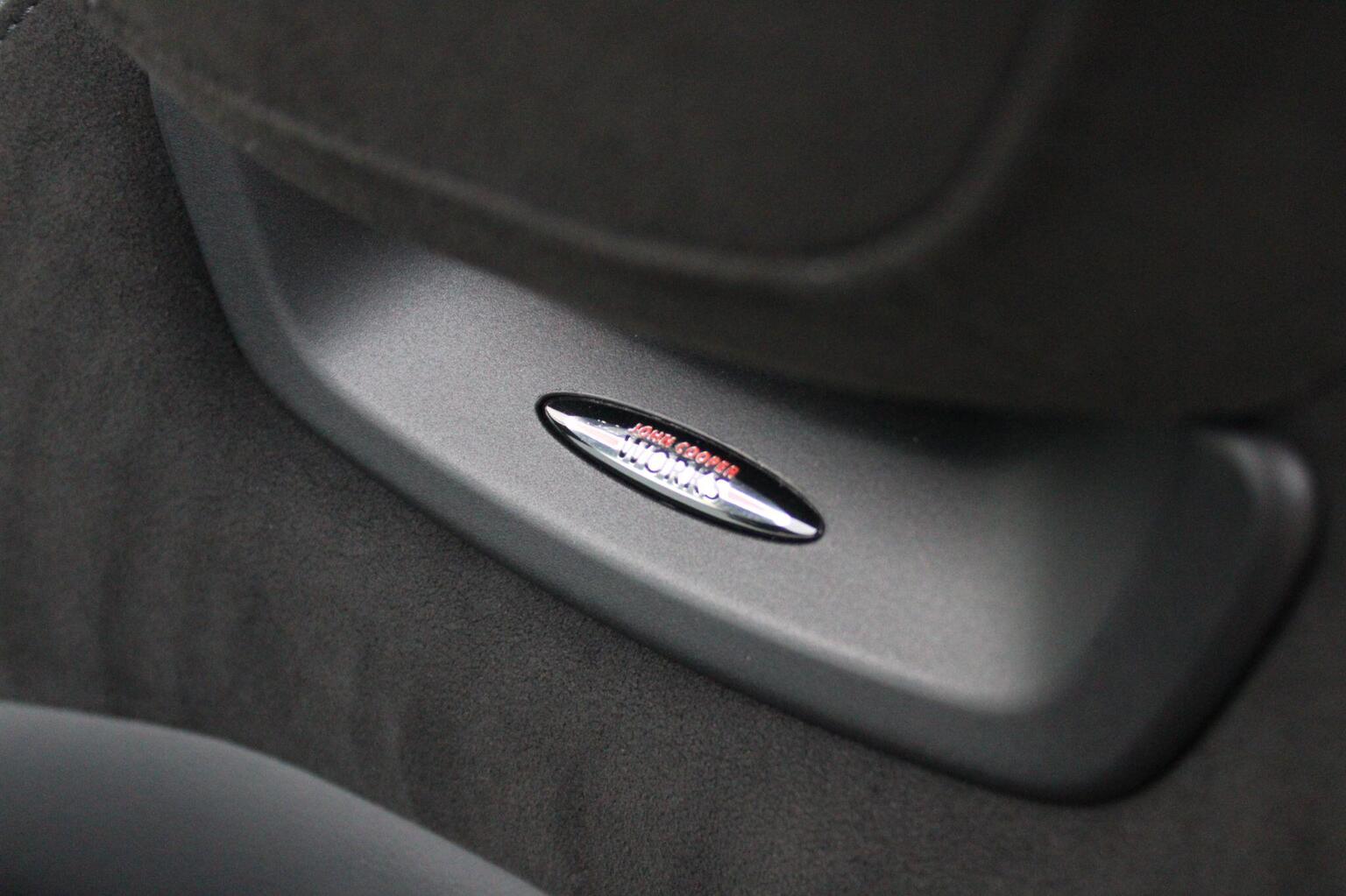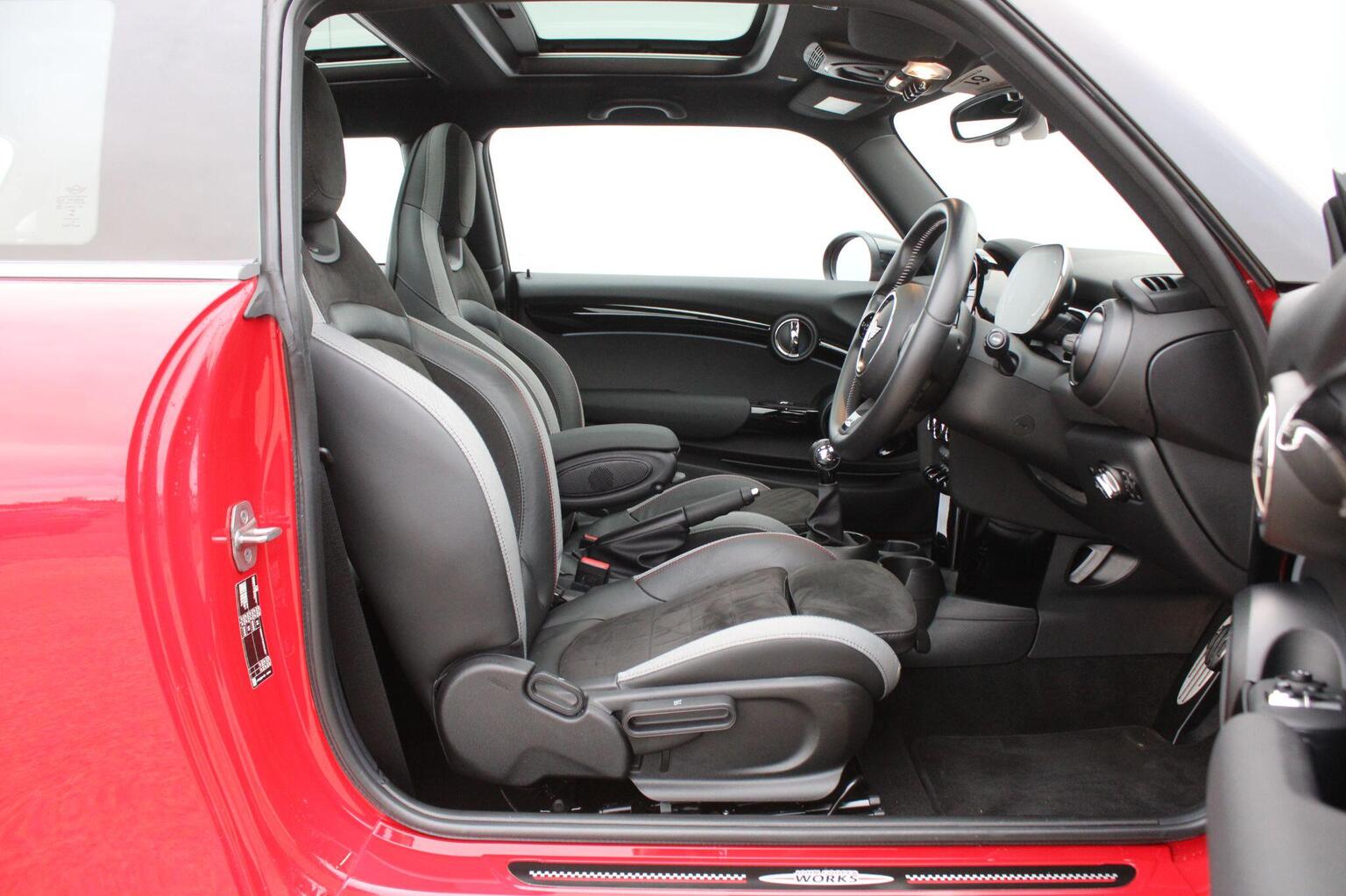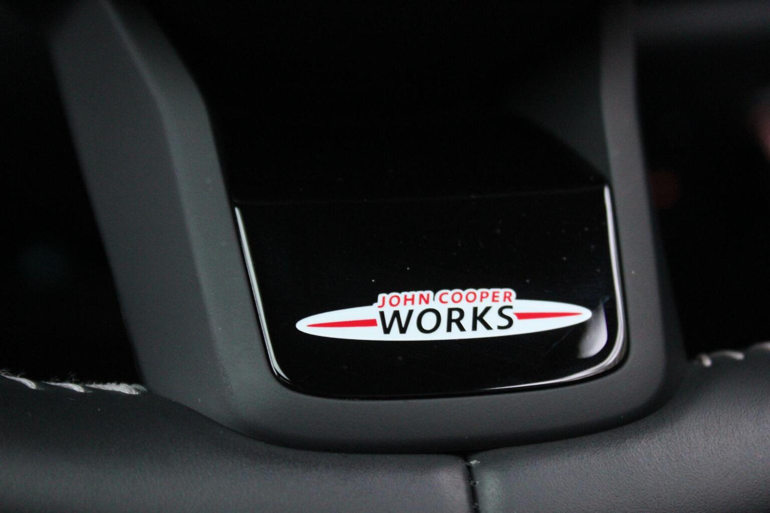 12V Socket in Centre Console, 17in Alloy Wheels - John Cooper Works Track Spoke - Black, 3 Point Seatbelts on all Seats, 4 Lashing Eyes in Luggage Compartment, 4 Speakers - in Front Door Trims and Underneath Front Seats, 8.8in Touchscreen with LED Ring, Adaptive Suspension, Air Conditioning - Manual, Airbags, Alarm System, Anti-Lock Braking System - ABS, Automatic Headlight Activation Switch, Bluetooth for Compatible Mobile Phone - with Audio Streaming, Carbon Black Colour Line - Knee Roll and Door Armrests, Chrome Highlights, Cruise Control with Brake Function, Cup Holders, Door Storage Compartments, Dynamic Brake Lights, Dynamic Stability Control - DSC, Electric Windows - Front, Electro-Mechanical Steering with Speed Dependant Steering Assistance, Electronic Vehicle Immobiliser, Exhaust Tailpipe - Left with Chrome Finisher, FM Tuner and DAB Digital Radio, Floor Mats - Velour, Foldable Rear Seats 60-40, Front and Rear ISOFIX - including Front Passenger Airbag Deactivation, Fuel Filler Cap in Body Colour, Gear-Change Indicator Display, Glove Compartment, Headliner - Anthracite, Heated Rear Window, Heated Windscreen Washer Jets, Instrument Cluster, Interior Lighting, Interior Trim - Piano Black, John Cooper Works Aerodynamic Kit, John Cooper Works Roof Spoiler, John Cooper Works Sport Seats, LED Headlights with Closed Ring as Daytime Driving Lights, LED Reading Lights - Vanity Mirror Lights - Front Footwell Lights - Spotlights on Front Seats, Leatherette Gearshift Lever and Handbrake Gaiters, MINI Driving Modes, MINI E-Call, MINI TeleServices, Mechanical Seat Adjustment, Model Logo Cooper on Right of Tailgate, Multifunction Controls for Steering Wheel, On-Board Computer, PDC - Park Distance Control - Rear, Performance Control, Piano Black Exterior Trim, Radiator Grille - Chrome Border with Black High-Gloss Slats, Rain Sensor Window Wipers, Rear Fog Light, Rear LED Lights with Union Jack Design, Rear Window Wiper, Roof and Mirror Caps - Black, Side Scuttle Panels with Integrated Indicators, Single Tone Fanfare Horn, Start-Stop Toggle including Keyless Go, Steering Column Height and Length Adjustment, Sun Visor with Vanity Mirrors, Sun-Heat Protection Glass, Tool Kit in Luggage Compartment, Tyre Pressure Monitoring System, Walknappa Leather Steering Wheel with Grey Seam, White Indicator Lenses