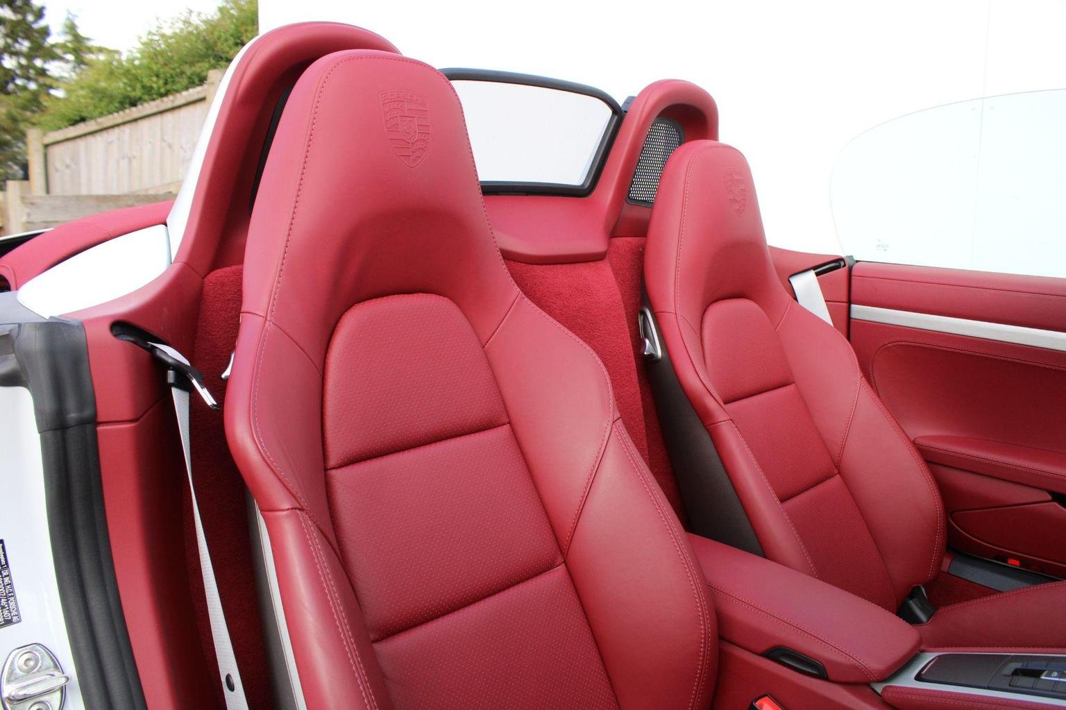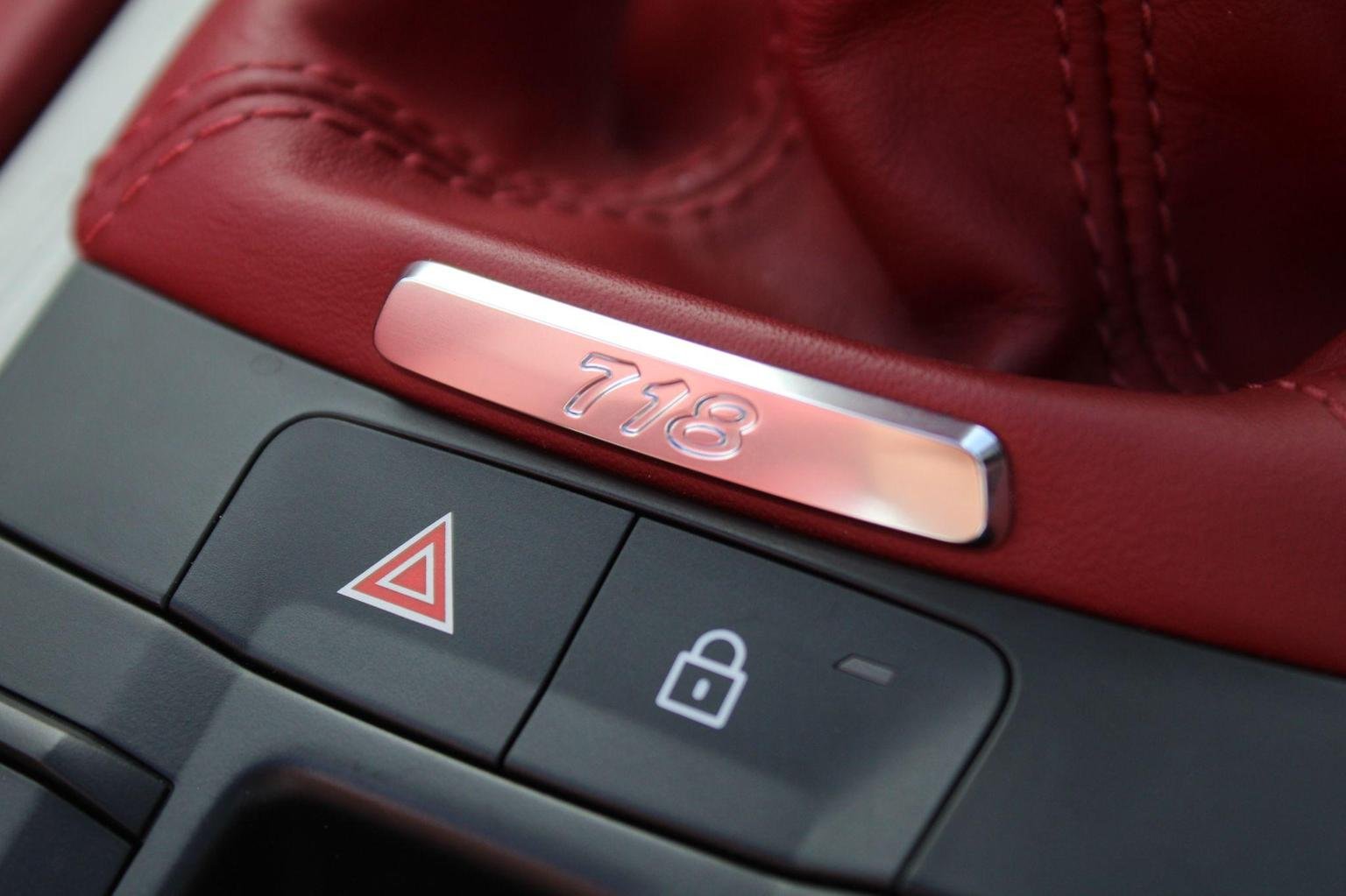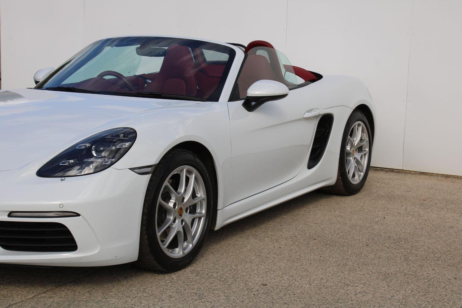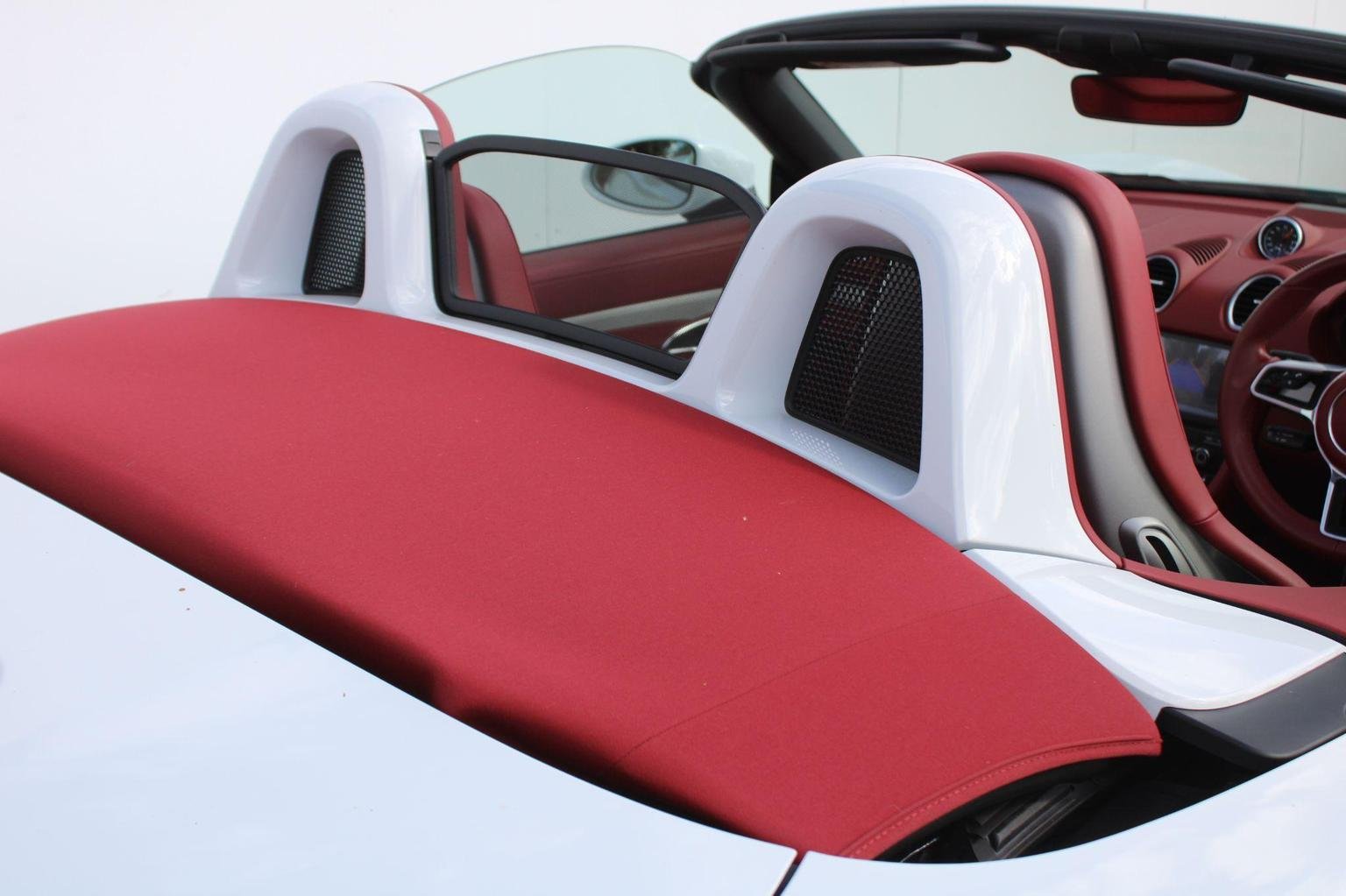 Porsche Torque Vectoring - PTV with Mechanically Locking Rear Differential, 64 Litre Fuel Tank, PASM - Porsche Active Suspension Management with Ride Height Lowered by 10mm, Heated Multifunction Steering Wheel, Smoking Package, Light Design Package, LED Main Headlights including Porsche Dynamic Light System - PDLS, Interior Package - Brushed Aluminium - with Leather Interior, Sports Seats Plus - Electrical 2 Way, Automatically Dimming Mirrors with Integrated Rain Sensor, BOSE Surround Sound System, ParkAssist - Front and Rear with Reversing Camera, Seat Belts - Silver Grey, Porsche Crest on Head Restraints, Leather with Leather Interior - Bordeaux Red, 718 Logo, Convertible Top Colour - Red, Electrically Folding Exterior Mirrors, Roll-Over Bars Painted in Exterior Colour, Vehicle Key Painted with Key Pouch in Leather, 18in Alloy Wheels - Cayman