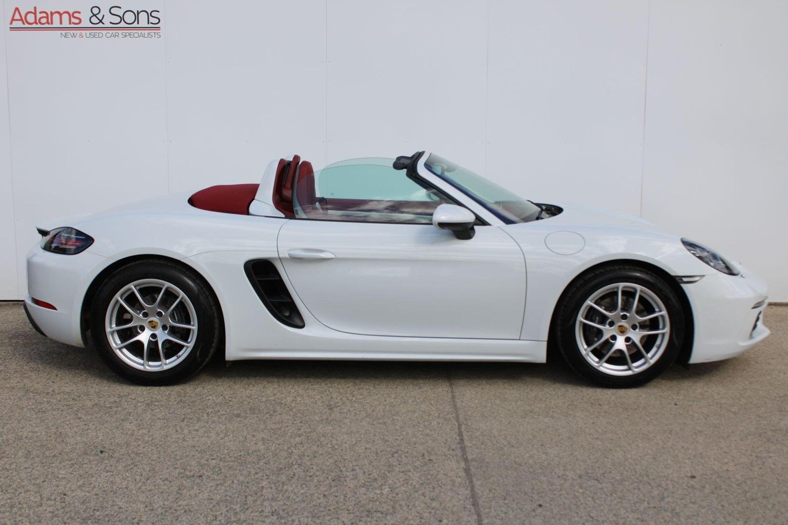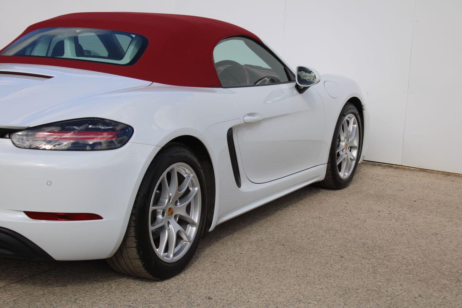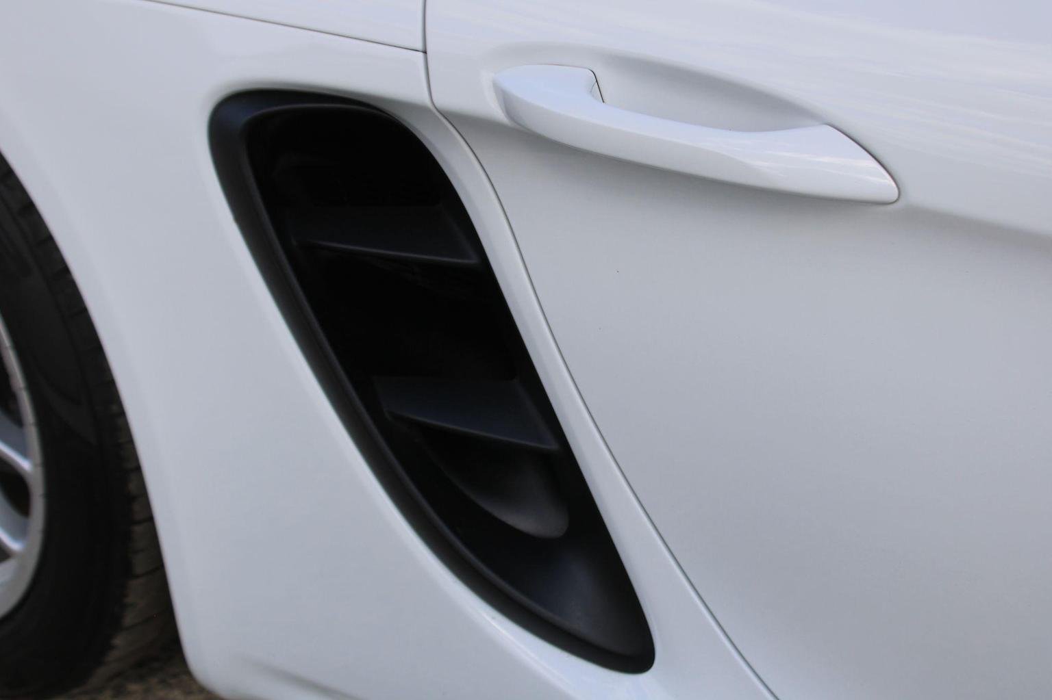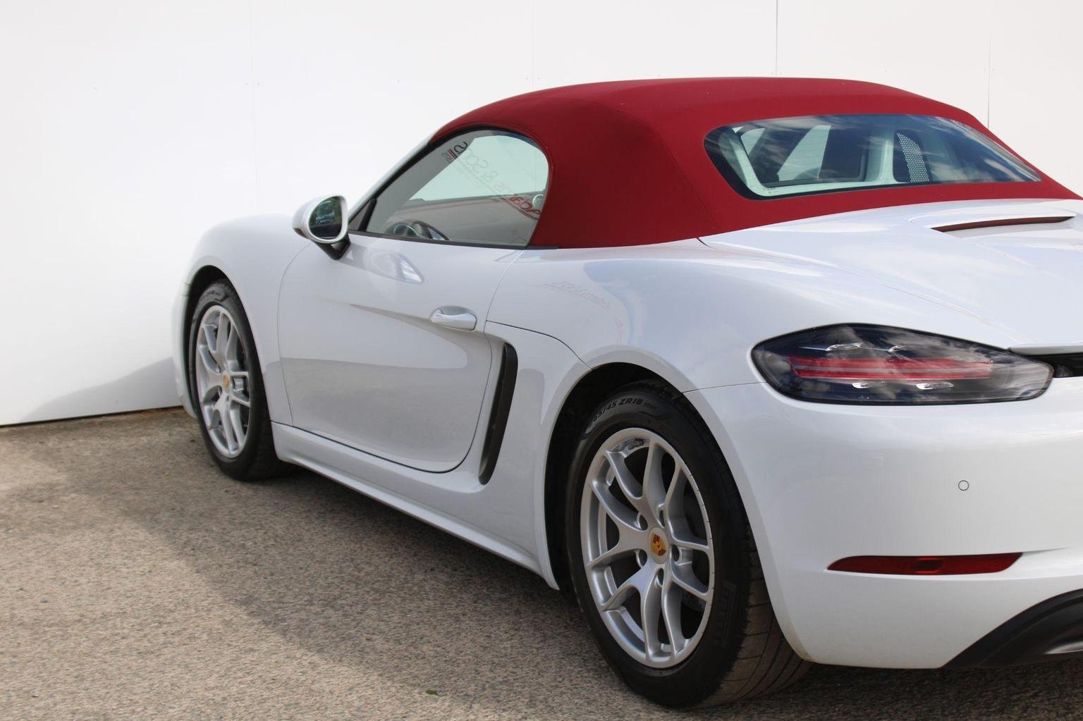 12-Volt Sockets in Passenger Footwell and Centre Console Storage Compartment, 18in Alloy Wheels - Boxster, 718 Logo on Gear lever, Adjustable Fan with Air Recirculation and Defroster Functions, Air Conditioning with Integrated Active Carbon Filter, Alarm System, Anti-Theft Wheel Bolts, Ascending Centre Console with an Uncovered Storage Compartment and a Closed Storage Compartment, Automatic Deploying Rear Wing, Automatic Headlight Activation including Welcome Home Lighting, Bi-Xenon Headlights with Integrated LED Daytime Running Lights, Brake Calipers - Black, Clothes Hooks on Seat Backrests, Convertible Top Colour - Black, Cruise Control, Dashboard Trim Strips and Centre Console Trim in Silver Colour - High-Gloss, Digital Displays for Vehicle Speed - Chosen Gear - Odometer -Trip Meter and Time, Digital Radio, Door Sill Guards - Model Designation Logo, Electric Windows with One-Touch Operation and Door Seal Protection Function, Electrically Adjustable Heated Exterior Mirrors on Door Waist Rails - Aspherical on Drivers Side, Electrically Controlled Parking Brake, Electromechanical Direct Steering with Variable Steering Ratio and Steering Pulse Generator, Engine Water Cooled with Thermal Management, Fixed Roll-Over Bar, Floor Mats, Full Size Airbags for Driver and Front Passenger, Fully Automatic Fabric Hood, Green Tinted Heat-Insulating Glass, Instrument Cluster with Central Rev Counter and High Resolution 4.6inch Colour Display, Instrument Dials and Rev Counter in Black, Intelligent Lightweight in Aluminium-Steel-Composite Construction, LED Reading Lights - Orientation Lighting and Ignition Lock - Additionally Luggage Compartment and Glove Box Lighting, LED Taillights and Integral 4-Point Brake Lights and Reversing Lights, Lightweight Spring-Strut Axle Front and Rear, Luggage Compartments at Front and Rear, Net Wind Deflector, PCM - Porsche Communication Management - Include Navigation, PORSCHE Logo on Accent Strip and Model Designation on Rear Apron in Silver Colour - High Gloss, Park Assist - Front and Rear, Porsche Side Impact Protection - POSIP, Porsche Stability Management - PSM Including ABS with Extended Brake Functions, Remote Central Locking with Immobiliser, SPORT Button to Activate Dynamic Driving Setting for Engine, Seat Heating, Separate Auxiliary Lights in the Front End with LED Indicators and Position Lights, Side Air Intake with 2 Grilles in Black, Sound Package Plus, Sports Seats with Electric Backrest Adjustment and Manual Fore-Aft and Height Adjustment, Sports Steering Wheel - Diameter 375mm with Manual Fore-Aft and Height Adjustment, Storage Compartment in Each Door, Twin-Tract Sports Exhaust System with Central Tailpipe in Stainless Steel, Two Individual Cup Holders - Integrated into Dashboard Trim Strip, Tyre Pressure Monitoring System - TPM, Tyre Repair Kit, Windscreen Washer System with Two Wiper Speeds and Washer Jets, Windscreen with Darker Grey Tint at the Top to Reduce Glare