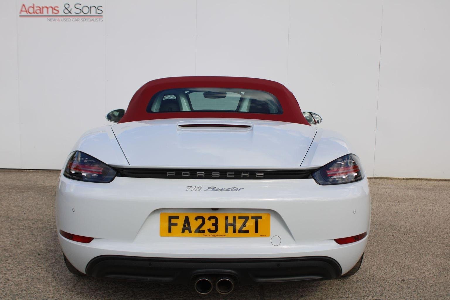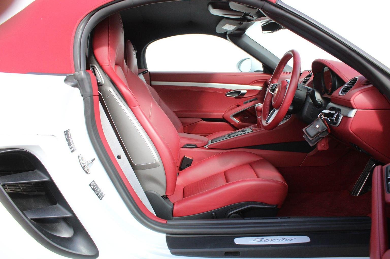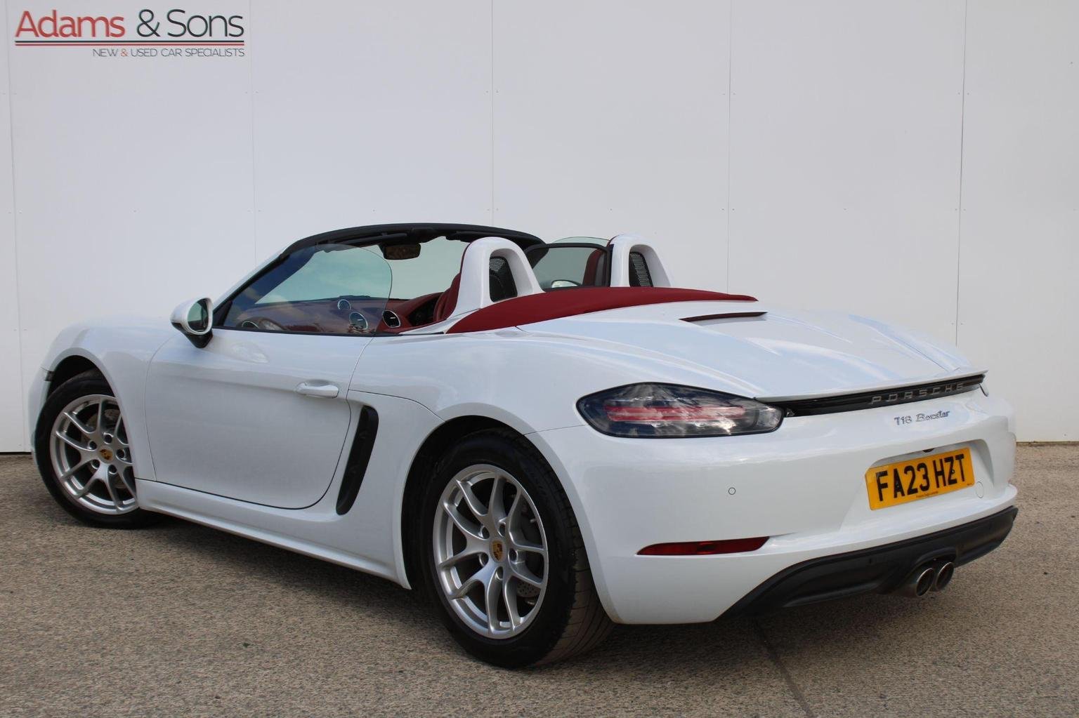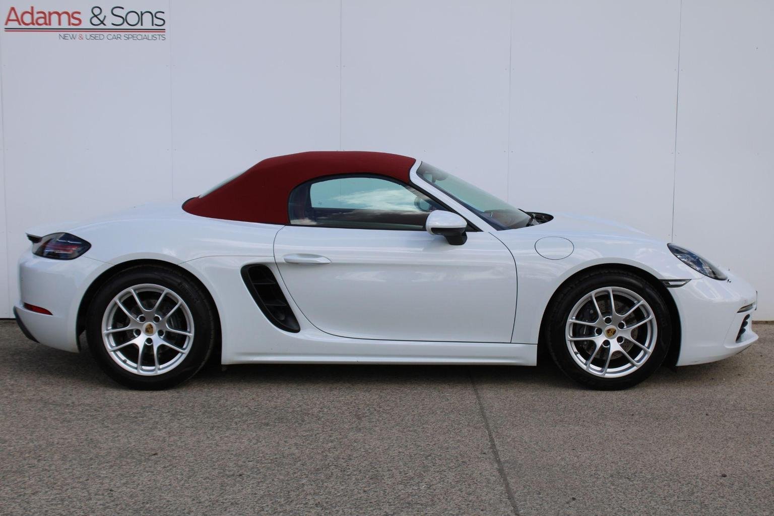 12-Volt Sockets in Passenger Footwell and Centre Console Storage Compartment, 18in Alloy Wheels - Boxster, 718 Logo on Gear lever, Adjustable Fan with Air Recirculation and Defroster Functions, Air Conditioning with Integrated Active Carbon Filter, Alarm System, Anti-Theft Wheel Bolts, Ascending Centre Console with an Uncovered Storage Compartment and a Closed Storage Compartment, Automatic Deploying Rear Wing, Automatic Headlight Activation including Welcome Home Lighting, Bi-Xenon Headlights with Integrated LED Daytime Running Lights, Brake Calipers - Black, Clothes Hooks on Seat Backrests, Convertible Top Colour - Black, Cruise Control, Dashboard Trim Strips and Centre Console Trim in Silver Colour - High-Gloss, Digital Displays for Vehicle Speed - Chosen Gear - Odometer -Trip Meter and Time, Digital Radio, Door Sill Guards - Model Designation Logo, Electric Windows with One-Touch Operation and Door Seal Protection Function, Electrically Adjustable Heated Exterior Mirrors on Door Waist Rails - Aspherical on Drivers Side, Electrically Controlled Parking Brake, Electromechanical Direct Steering with Variable Steering Ratio and Steering Pulse Generator, Engine Water Cooled with Thermal Management, Fixed Roll-Over Bar, Floor Mats, Full Size Airbags for Driver and Front Passenger, Fully Automatic Fabric Hood, Green Tinted Heat-Insulating Glass, Instrument Cluster with Central Rev Counter and High Resolution 4.6inch Colour Display, Instrument Dials and Rev Counter in Black, Intelligent Lightweight in Aluminium-Steel-Composite Construction, LED Reading Lights - Orientation Lighting and Ignition Lock - Additionally Luggage Compartment and Glove Box Lighting, LED Taillights and Integral 4-Point Brake Lights and Reversing Lights, Lightweight Spring-Strut Axle Front and Rear, Luggage Compartments at Front and Rear, Net Wind Deflector, PCM - Porsche Communication Management - Include Navigation, PORSCHE Logo on Accent Strip and Model Designation on Rear Apron in Silver Colour - High Gloss, Park Assist - Front and Rear, Porsche Side Impact Protection - POSIP, Porsche Stability Management - PSM Including ABS with Extended Brake Functions, Remote Central Locking with Immobiliser, SPORT Button to Activate Dynamic Driving Setting for Engine, Seat Heating, Separate Auxiliary Lights in the Front End with LED Indicators and Position Lights, Side Air Intake with 2 Grilles in Black, Sound Package Plus, Sports Seats with Electric Backrest Adjustment and Manual Fore-Aft and Height Adjustment, Sports Steering Wheel - Diameter 375mm with Manual Fore-Aft and Height Adjustment, Storage Compartment in Each Door, Twin-Tract Sports Exhaust System with Central Tailpipe in Stainless Steel, Two Individual Cup Holders - Integrated into Dashboard Trim Strip, Tyre Pressure Monitoring System - TPM, Tyre Repair Kit, Windscreen Washer System with Two Wiper Speeds and Washer Jets, Windscreen with Darker Grey Tint at the Top to Reduce Glare